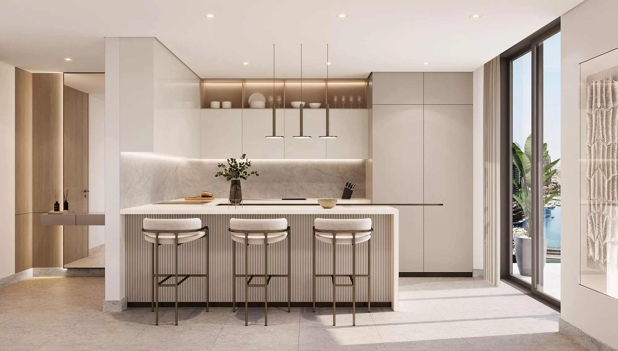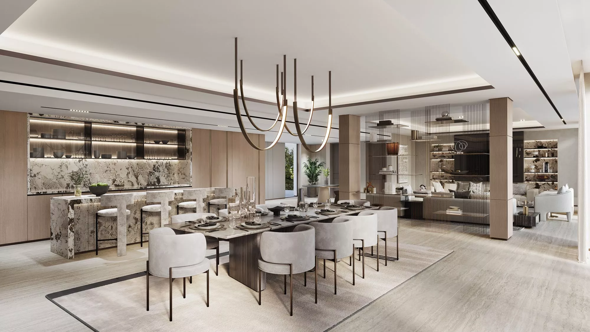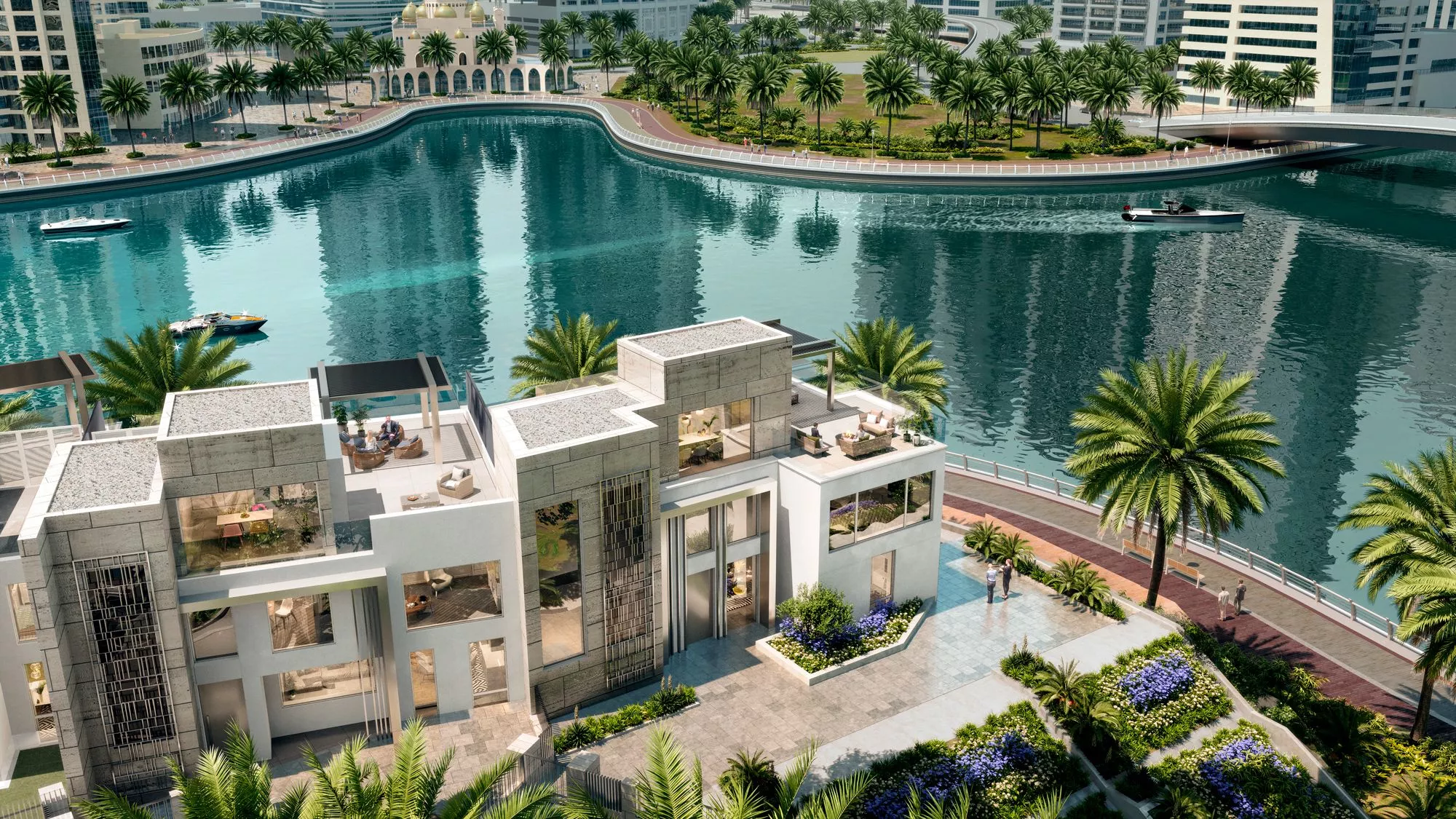 The gorgeous villas feature oversized terraces, an indoor & outdoor TV viewing area, a lounge space, dining spaces with BBQs, a rooftop lounge and terrace, a gym, a study or office, a room for a pool table or piano and more. Select units contain a private swimming pool. These residences are also distinguished by exclusive gardening, travertine & stucco facades, metal & mashrabiya accents and imported European wood flooring.