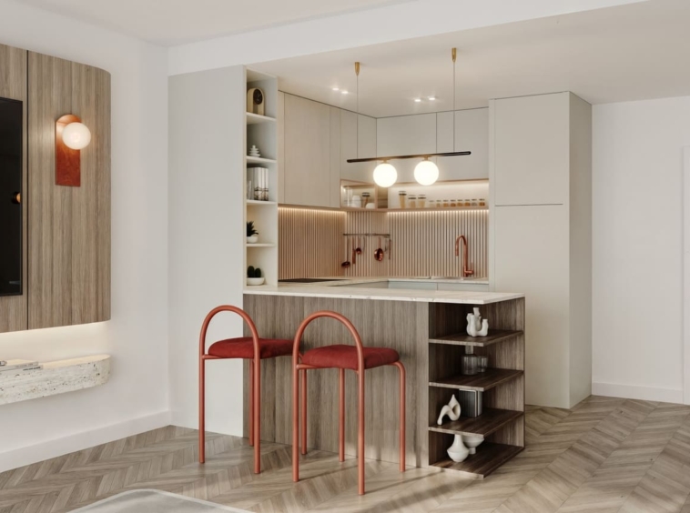 Floor-to-ceiling windows maximise natural light and connect to the outdoors, bringing the energy of Jumeirah Village Circle inside and transforming every apartment into a haven of comfort. Smartly placed nooks and refined details — such as state-of-the-art appliances, rich terracotta and burgundy paint and fabrics, and custom pendant lighting — add a mature, timeless touch, allowing you to live, work, and soak in the energy of your surroundings.